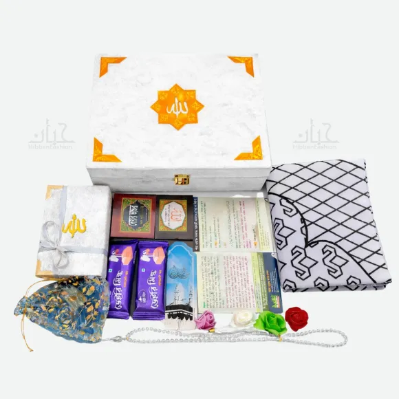 সাদা রঙের এই বিশেষ গিফট বক্স শুধু ইসলামিক উপহারই নয়, বরং এর পরিষ্কার, মার্জিত ও পবিত্র উপস্থাপনা এটিকে করে তুলেছে বিশেষ কোনো উপলক্ষের জন্য আদর্শ উপহার। সাদা রঙ ইসলামে পবিত্রতা ও শুদ্ধতার প্রতীক হিসেবেও বিবেচিত হয়।